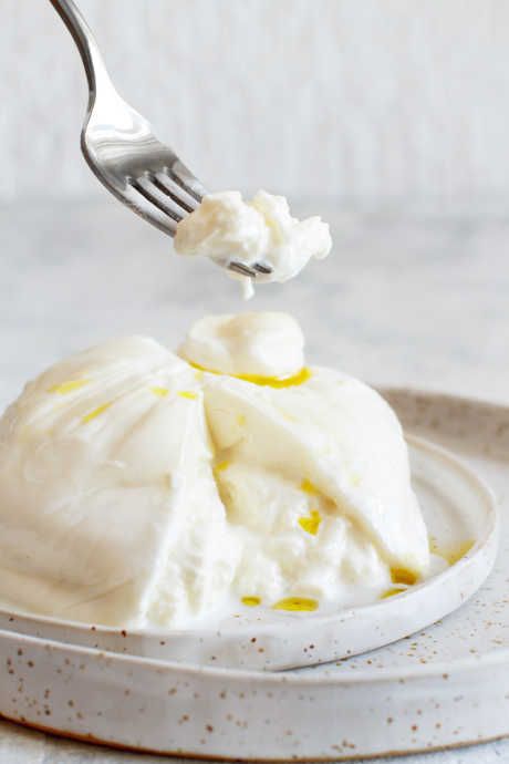 - Burrata – Instead of kneading fully, fill the mozzarella with a creamy ricotta-like center.
